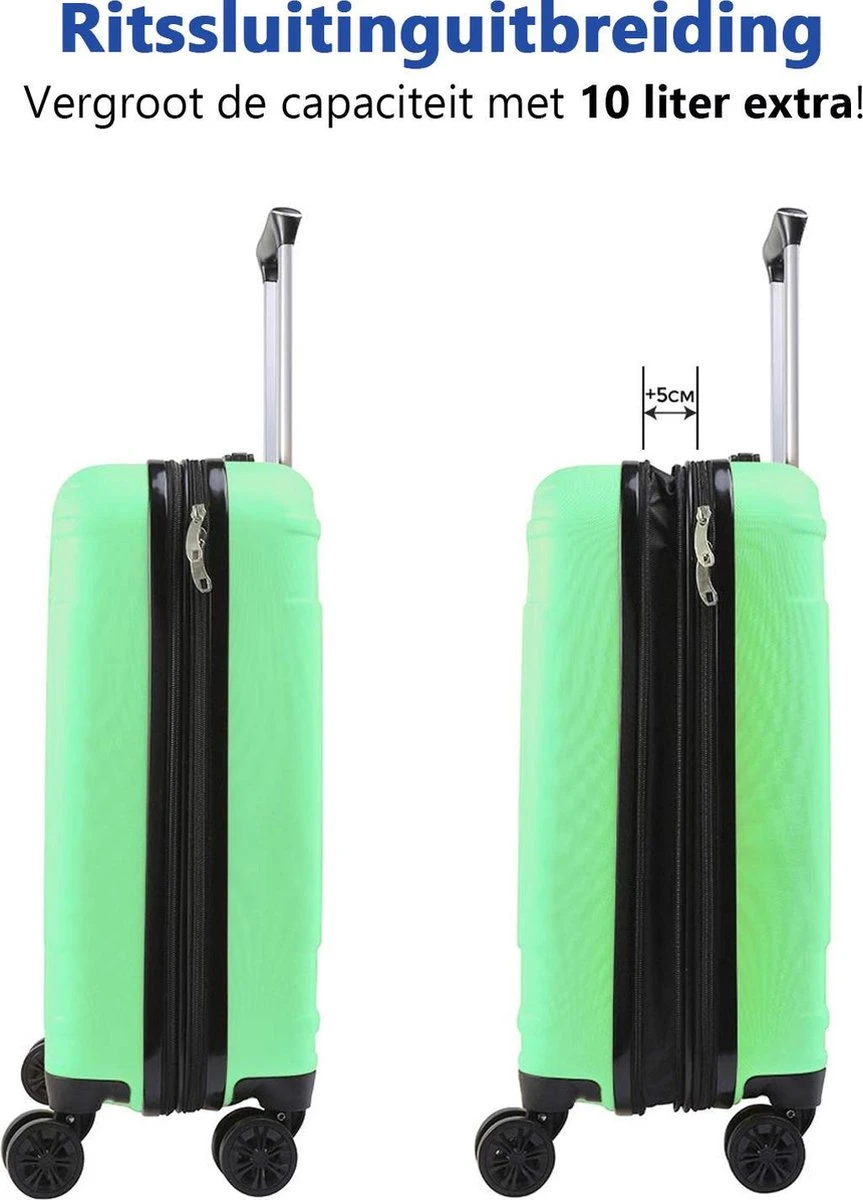 CabinMax Velocity Handbagage Koffer – Uitbreidbaar Trolley 44L – Harde Reiskoffer – 55x40x20/25 Cm – Lichtgewicht – Groot Capaciteit – Mint Groen