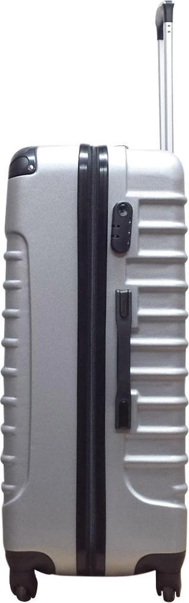 Mooie 2-delige hardschalen kofferset bestaande uit een koffer maat XL en een koffer maat S. Koffers zijn binnenin gevoerd, voorzien van spanbanden en een tussenschot met rits. Comfortabel door 4-wiel systeem. Beide koffers zijn voorzien van een vast cijferslot op de zijkant van de koffer.