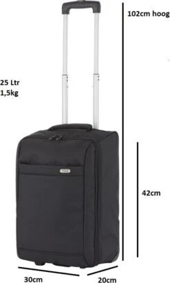 TravelZ Handbagage 42cm Underseat – Handbagagekoffer Opvouwbaar 1,5kg – Ultralicht – 2 Wiel – Zwart