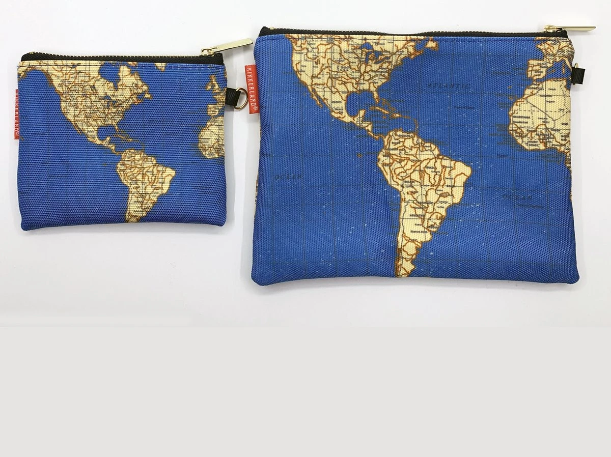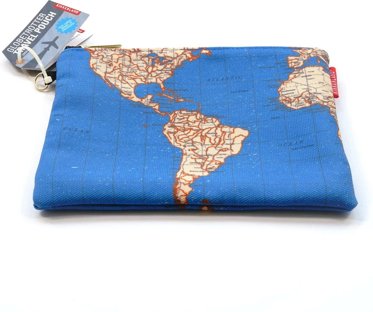 Reis in stijl en houd je spullen bij elkaar met de Reistas Wereldkaart van Kikkerland. Je kan de reistas is handig om bijvoorbeeld de toiletartikelen bij elkaar te houden in de koffer.