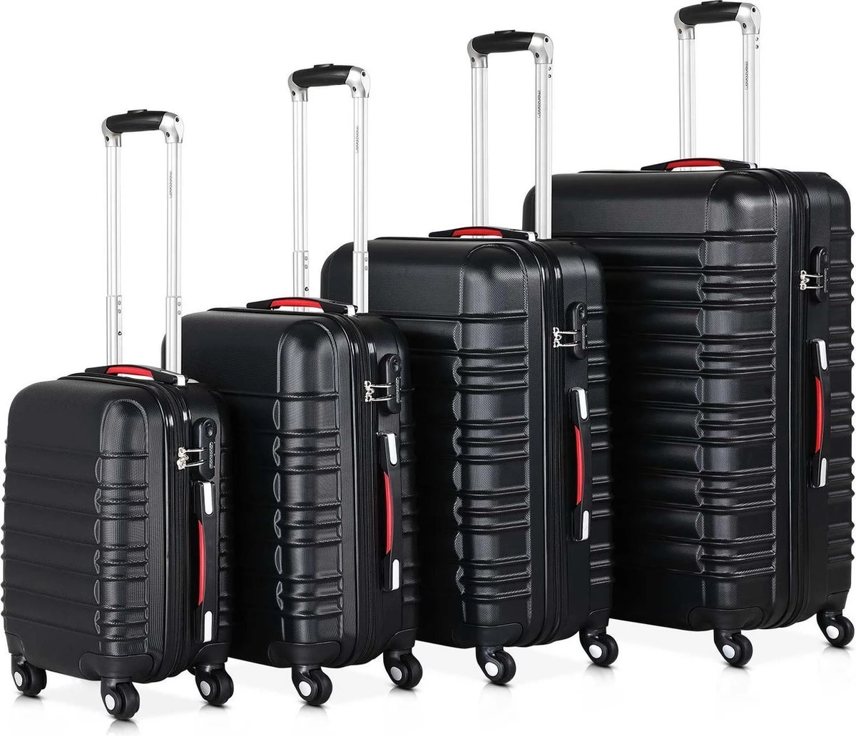 Robuust en een laag gewicht onderscheiden deze koffers. Met 4 geruisloze wielen met PU-coating (360° draaibaar), stevige aluminium telescoopgrepen en de voorgevormde handgrepen (boven- en zijkant) met gel-inzet kunnen de koffers comfortabel worden meegenomen.