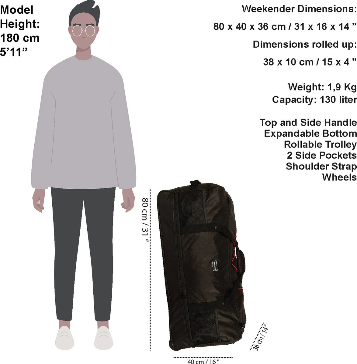 New Rebels Roll-able Trolley – Reistas – Weekendtas – Sporttas 80 Cm – Zwart