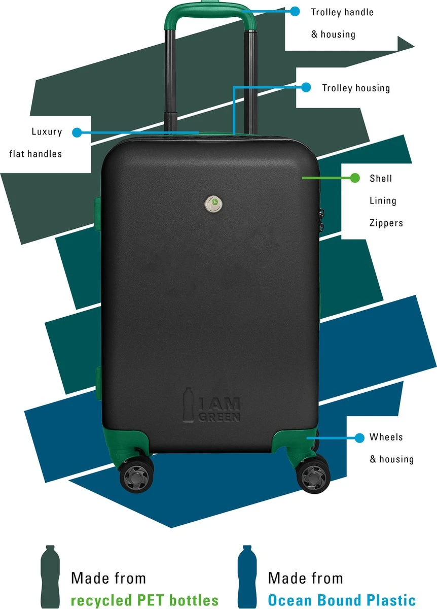 Hoe groen wil jij zijn? Op zoek naar een stevige, duurzame en lichtgewicht koffer? Zoek niet verder. De Princess Traveller Atlantic koffer is het exemplaar waar je direct verliefd op wordt. Alle onderdelen zijn gemaakt van oude PET-flessen en plastic visnetten en touwen uit de zee, die tot gerecyclede korrels worden vermalen. Met deze lichte en sterke koffer draag je dus bij aan een betere, schonere en meer duurzame wereld.