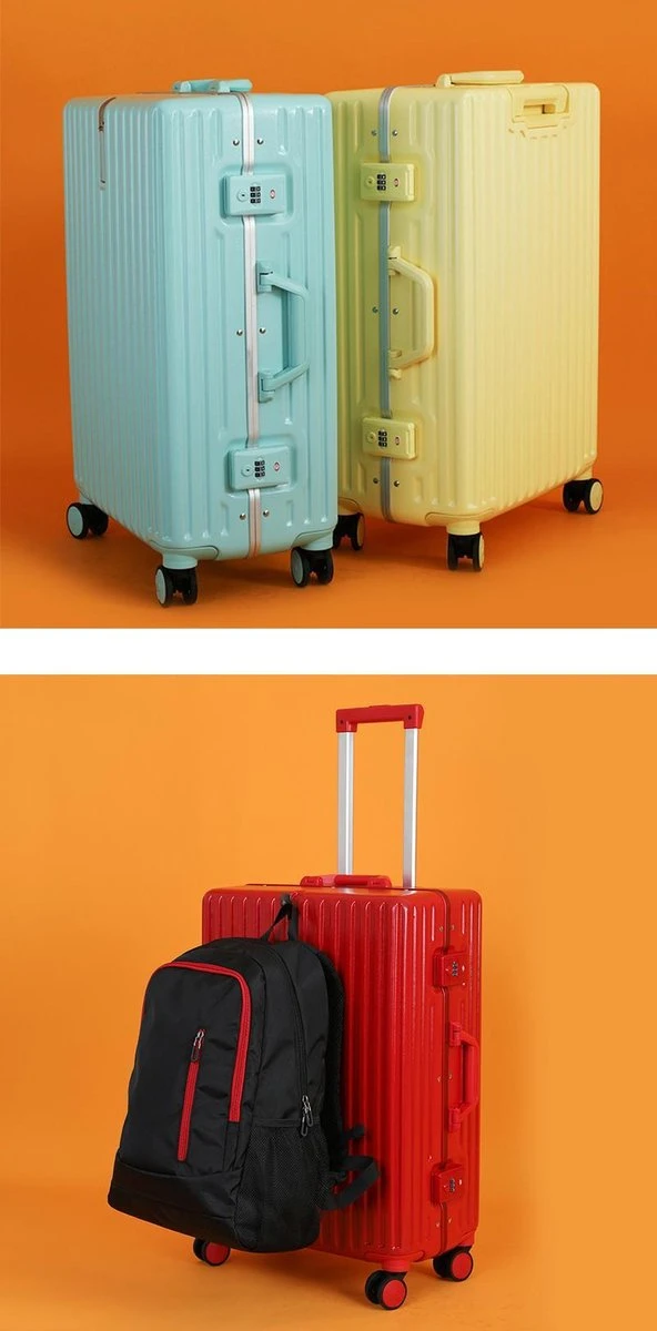 TOP-AA Reis koffers Aluminum frame, Kleine cabine en groot, Rood/Groen/Roze/Geel, PP Trolley Luggage, Red/Green/Pink/Yello (20+24+28 inches 3 pc set)