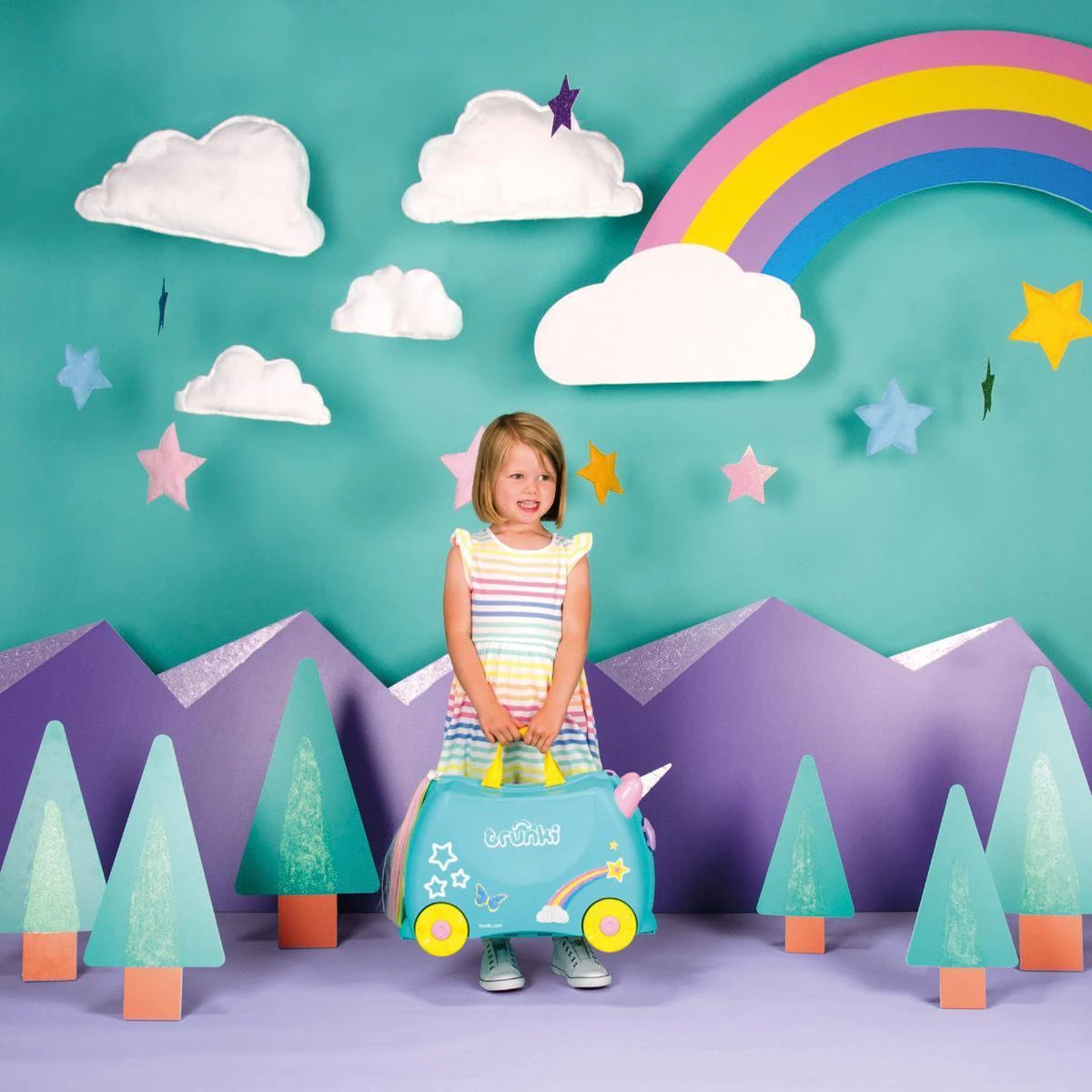 Una de eenhoorn Trunki is gemaakt in het Verenigd Koninkrijk van lichtgewicht afwasbaar plastic dat is ontworpen om lang mee te gaan. Onze trots ten aanzien van onze Trunki’s uit zich in een 5-jarige garantie op alle Trunki ride-on koffers.