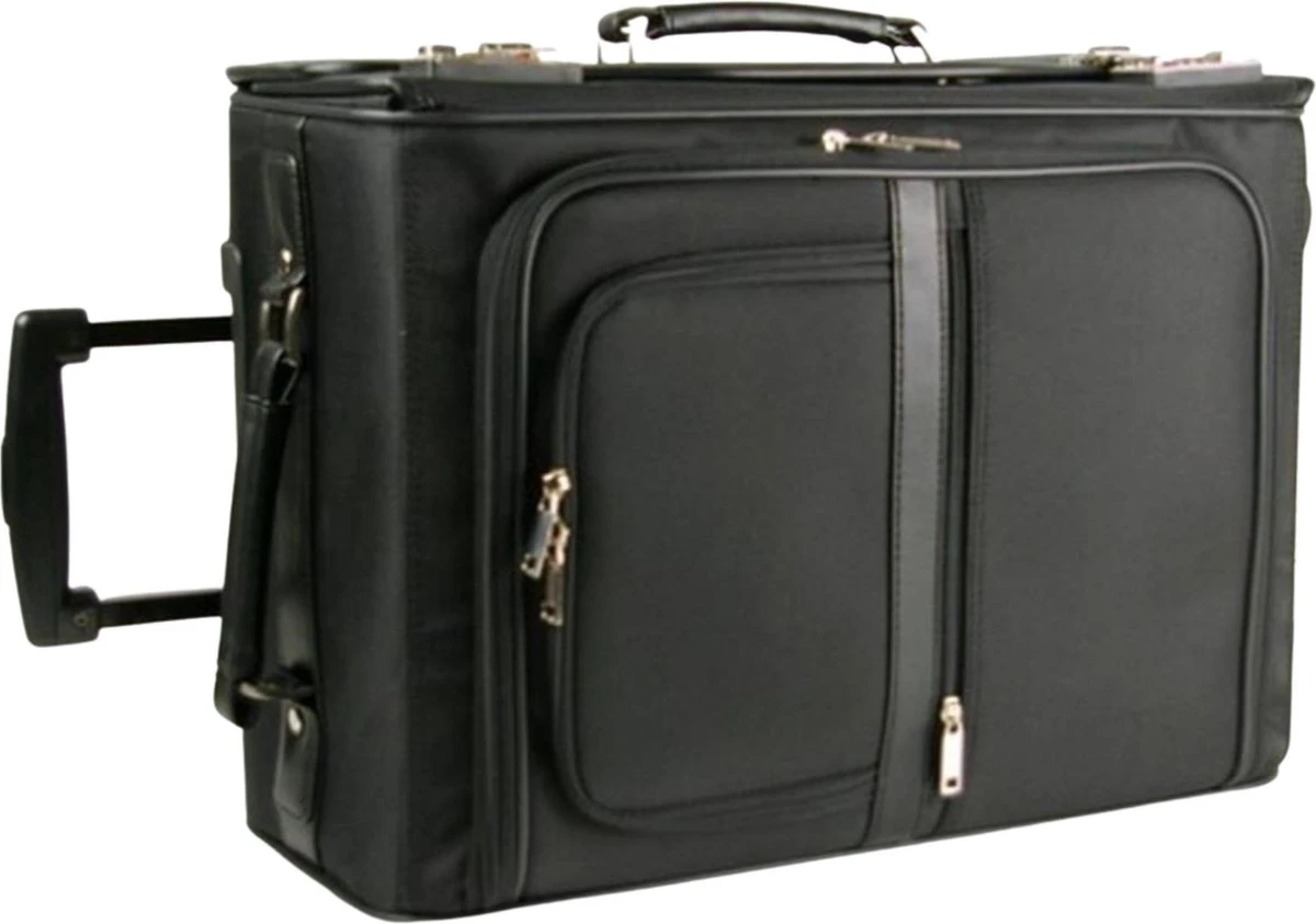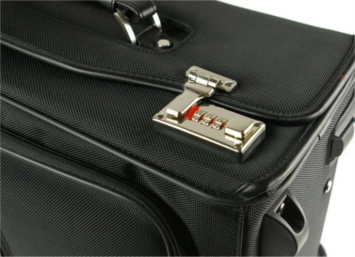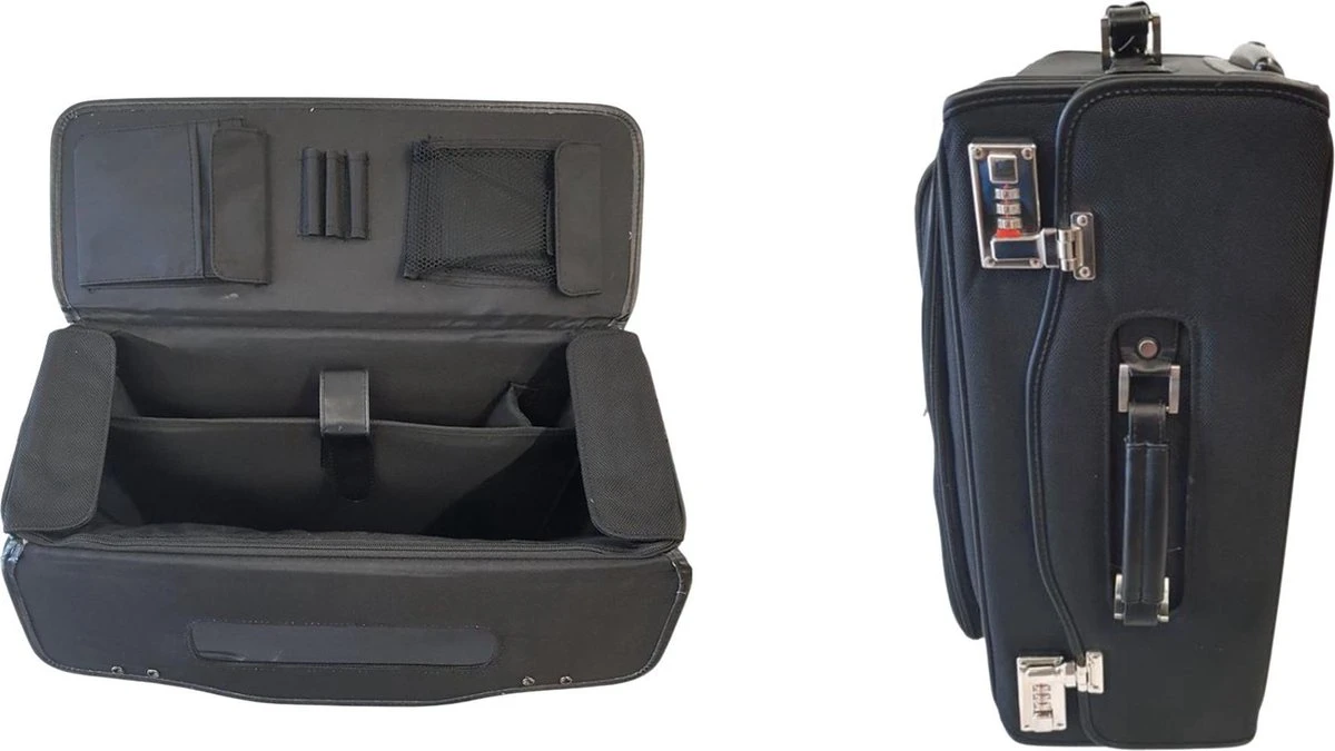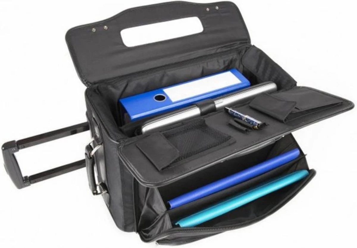 Gaat u meerdere nachten op zakenreis? Dan is dit de trolley die u zoekt! Gemaakt van 1680D polyester en met 3x voorvakken, waarvan de grootste 3 document vakken heeft, kunt al het noodzakelijke meenemen naar uw bestemming. Deze “overnighter” heeft een klep welke in 2 delen is te openen en af te sluiten met 2 cijfersloten. Verder heeft hij 2 handvatten om te dragen (1 aan de smalle- en 1 aan de lange zijde) en een trolley systeem om niet te hoeven slepen. Binnenin bevindt zich 1 groot compartiment en 1 gevoerd laptop compartiment. Aan de binnenzijde van het deksel treft u pennenhouders en 2 pockets aan. Ook deze trolley mag door zijn handige afmeting bij de meeste luchtvaartmaatschappijen mee als handbagage.